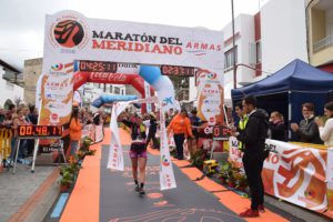 NOTA DE PRENSA 3 de febrero de 201 Maratón del Meridiano: una edición de récord Stian Argermund y Azara García se imponen en la duodécima Maratón del Meridiano Naviera Armas Stian Argermund y Azara García han cumplido con los pronósticos y son nuevo récord del Maratón del Meridiano Naviera Armas. Una prueba vertiginosa y la primera de las carreras de montaña del año. A pesar del mal tiempo y la dureza del recorrido, el crono ha sido espectacular; el noruego Stian Argermund bajaba el récord en nueve minutos, con un crono de 03:41:18. El segundo y tercer puesto han sido para Efrén Segundo y Cristofer Clemente, quienes entraban juntos en la meta, con un tiempo de 03:51:23 y 03:51:24, respectivamente. El cuarto y quinto lugar han sido para Zaid Aid Malek, quien dominó en un primer momento la carrera; y para Yeray Durán. Azara García ha reafirmado su vuelta al trail en El Hierro, pulverizando el tiempo de la prueba, con sus 04:25:06 batía el récord bajándolo en 30 minutos. El pódium femenino de los 42 km lo han completado Patricia López y Anabel de la Rosa. Calor del público herreño a pesar del frío en una prueba que ha congregado a 1300 participantes. Tanto Stian como Azara valoraban positivamente la carrera, de la que han disfrutado del recorrido, “duro pero muy diverso”. El pódium de 27 km masculino ha sido para Alejandro Mayor, con 02:28:12; en segundo lugar ha entrado Daniel Santana y tercero Raúl Díaz Perdomo; en féminas, Mónica Zofío ha sido la primera con 03:19:32; seguida de Verónica Carballo y Rosa María Suárez. En los 18 km, se han impuesto los ganadores del Kilómetro Vertical Jinama Cicar: Marc Sabater y Sheila Avilés, también batiendo récords, el primero con: 1.27:59 y Sheila con 1:42:13. El pódium masculino de 18 km se ha completado en segundo lugar con Carlos Jesús Hernández y Adrián Perdomo; y el femenino con la herreña Miriam Rodríguez Gambín entrando en segunda posición, con Elena Hernández como tercera. En los 9 kilómetros masculinos el primero en entrar en meta ha sido Adrián Hernández, con un tiempo de 00:43:36; seguido del herreño Kiliam Luis Pérez y Celso Febles. Y en féminas la primera en entrar en meta ha sido Ángela Morales, con 00:57:15, seguida de Lucía Méndez y Liuba Pérez. Este año la prueba se ha dedicado con cariño a José Carlos Vera, tristemente fallecido y uno de los corredores asiduos del Maratón del Meridiano, con un pequeño reconocimiento a su padre realizado en la entrega de trofeos. La 12ª edición del Maratón del Meridiano organizada, una edición más, por el Ayuntamiento de La Frontera ha sido una edición de récord, buenos tiempos y una apuesta ya por buena parte de sus integrantes para estar presentes en la próxima edición; y es que quien prueba esta carrera repite de sus más de 5000 metros de desniveles acumulados y de sus paisajes Reserva de la Biosfera. El Ayuntamiento de La Frontera agradece la colaboración de más de 150 voluntarios El Ayuntamiento de La Frontera ha querido agradecer la colaboración los más de 150 voluntarios que como en cada edición son uno de los principales soportes de la carrera; así como el patrocinio de Naviera Armas , Obra Social “la Caixa”, Cicar; y las distintas colaboraciones de entidades como el Cabildo Insular de El Hierro, las Asociación de Protección Civil Valle del Golfo, Cruz Roja y empresas como Viajes Insular, Coca Cola, Heineken, Bimbo o la Cooperativa del Campo de Frontera, entre otros.