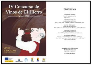 del 27 de Abril al 26 de Mayo Del 27 de Abril, iniciación. Viernes 4 de Mayo Vinos y bocados de El Hierro a las 8 de la tarde Restaurante Casa Juan La Restinga El Pinar. Jueves 10 de Mayo, misma hora, Restaurante Sunset, La Maceta. Viernes 18 de Mayo, misma hora Restaurante El Encuentro, Valverde. Sábado 26 de Mayo, 10 de la Mañana en el Centro Cultural Luis Martin Arvelo El Pinar y por la tarde: Entrega de Premios. INFORMACIÓN E INSCRIPCIÓN doelhierro@hotmail.com 922559622 y 922448937 PLAZAS LIMITADAS