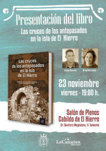 PRESENTACIÓN DEL LIBRO «LAS CRUCES DE LOS ANTEPASADOS EN LA ISLA DE EL HIERRO» De Joaquín Carreras Navarro y María del Pilar Galván Hernández Lugar: Salón de Plenos del Cabildo de El Hierro Fecha: Viernes, 23 de noviembre de 2018 Hora: A las 19:00 horas. «La isla de El Hierro y sus gentes son singulares por varios motivos. Unos conocidos y fomentados mediáticamente. Otros no tanto. Entre estos últimos, figura una antigua práctica local consistente en colocar en un pequeño nicho aledaño a cada vivienda, una cruz por cada persona fallecida en ese hogar. Hechas en madera y posteriormente también en mármol, se colocaban en memoria de cada familiar difunto. El nicho podía contener desde una simple unidad hasta superar ampliamente la decena de cruces, todas de pequeño tamaño y claramente visibles de cara al exterior y al resto de la comunidad. Tras dicha práctica subyace la antigua creencia en las ánimas y su cotidiana relación e interacción con ellas por parte de la vecindad, asi como una forma de afrontar y concebir la muerte totalmente diferente a la actual. Con los cambios en el devenir social , y por ende las creencias , tal práctica ha dejado de realizarse. Pero se mantiene el vestigio material como recuerdo de una antigua forma de concebir la existencia. Lo más curioso e interesante es que tales cruces son exclusivas de esta pequeña isla. sin parangón ni referente en otros lugares. Son algo único, peculiar y propio. Con todo lo que ello supone». Organiza: Área de Cultura del Cabildo de El Hierro. Para acceder al cartel puede hacerlo a través de los siguientes enlaces: (para descargar el cartel correspondiente acceder al enlace y pulsar opción DESCARGAR CON EL NAVEGADOR) https://mega.nz/#!7wMlkIaY!L-NviGx3EmmcgvDbn4AEgNqGIp7YP5RVdtUMpBJvkIk AGRADECEMOS LA DIFUSIÓN DE LA INFORMACIÓN RECOGIDA EN ESTE EMAIL, ENTRE AQUELLAS PERSONAS QUE PUEDAN ESTAR INTERESADAS. PARA MÁS INFORMACIÓN PUEDES CONTACTAR CON EL ÁREA DE CULTURA EN EL TLFNO. 922 55 40 11 Y EN LA PÁGINA WEB: www.elhierro.es Y EN EL FACEBOOK: www.facebook.com/cultura.cabildoelhierro