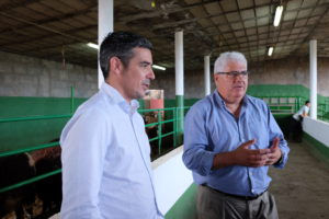 Narvay Quintero y Juan Pedro Sánchez visitan el Centro de Formación del Sector Primario de El Hierro El consejero de Agricultura, Ganadería y Pesca del Gobierno de Canarias, Narvay Quintero, visitó hoy viernes, 20 de octubre, las instalaciones del Centro de Formación del Sector Primario puesto en marcha por el Cabildo de El Hierro en El Matorral, Frontera, con ayuda del Ejecutivo autonómico a través del Servicio Canario de Empleo. El consejero estuvo acompañado por el vicepresidente y consejero de Medio Rural del Cabildo, Juan Pedro Sánchez. Durante la jornada, Quintero anunció que las líneas de subvención destinadas a primera instalación del Gobierno suponen, según se recoge en sus resoluciones provisionales, 739.000 euros para la isla, dirigidos a nuevos proyectos agrícolas y ganaderos. 12 jóvenes herreños pondrán en marcha empresas agrarias con las ayudas del Gobierno canario a través del PDR. Ambos mantuvieron encuentro con los 15 jóvenes que se forman en Ecoganadería en el Centro de Formación del Sector Primario de la isla. Este proyecto formativo está demostrando que es posible y rentable criar ganado y producir su propio alimento en Canarias, sirviendo de modelo a ganaderos profesionales en activo. Por su parte, las subvenciones destinadas a la creación de empresas agrarias dentro del Programa de Desarrollo Rural (PDR), que gestiona la consejería de Agricultura, Ganadería, Pesca, y Aguas del Gobierno de Canarias, servirán para que, inicialmente, 12 jóvenes de El Hierro pongan en marcha nuevos proyectos en el ámbito agrícola y ganadero de la isla, según se plasma en las resoluciones provisionales de esta línea. Así lo anunció hoy el consejero, Narvay Quintero, durante la visita al Centro de Formación. Durante su encuentro con los estudiantes, Quintero señaló que esta medida de dicho programa de ayudas, financiado por la Unión Europea, la Comunidad Autónoma y el Estado, supone un total de 739.000 euros para la isla, 330.000 € dirigidos a iniciativas desarrolladas por agricultores y 409.000 € para actuaciones ganaderas. Un total de 15 alumnos menores de 30 años reciben en esta escuela, situada en la finca de Los Palmeros, en el municipio de La Frontera, formación para manejar una empresa ganadera y en aspectos vinculados a la autosuficiencia en alimentación animal. Para ello cuenta con 50 gallinas, 30 ovejas, 20 cabras para la realización de las prácticas y con una finca de regadío de 9.000 metros cuadrados en las que se cultivan hasta nueve especies forrajeras. Quintero destacó que este proyecto formativo, que tiene una duración de 12 meses –se inició en enero y finalizará en diciembre de este año- está demostrando que es posible y rentable criar ganado en Canarias y producir su propio alimento (con un coste menor que de los piensos y forrajes importados), sirviendo de modelo a ganaderos profesionales ya instalados. Asimismo, subrayó que cuatro de estos estudiantes tienen ya en la actualidad ganado propio y tres de ellos han presentado sus proyectos para la creación de una empresa ganadera a dicha convocatoria de ayudas del PDR que gestiona la consejería de Agricultura. Por su parte, Juan Pedro Sánchez animó a los alumnos de la escuela de formación ganadera insular a continuar con su formación para lograr profesionalizarse y apostar por un sector hoy modernizado y pujante. Sánchez afirmó que la escuela tendrá continuidad en el futuro. «En El Hierro cuentan con muchas ayudas tanto del Cabildo como las que otorga el Gobierno y deben aprovecharlas para lograr convertir la ganadería en un medio de vida».
